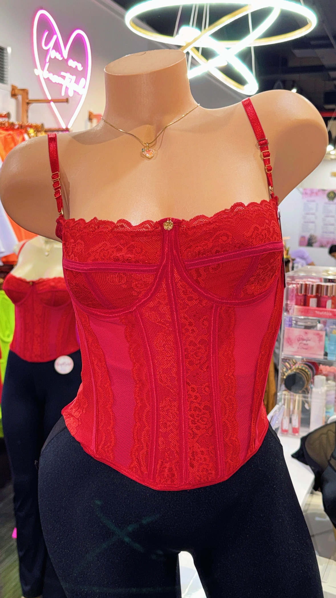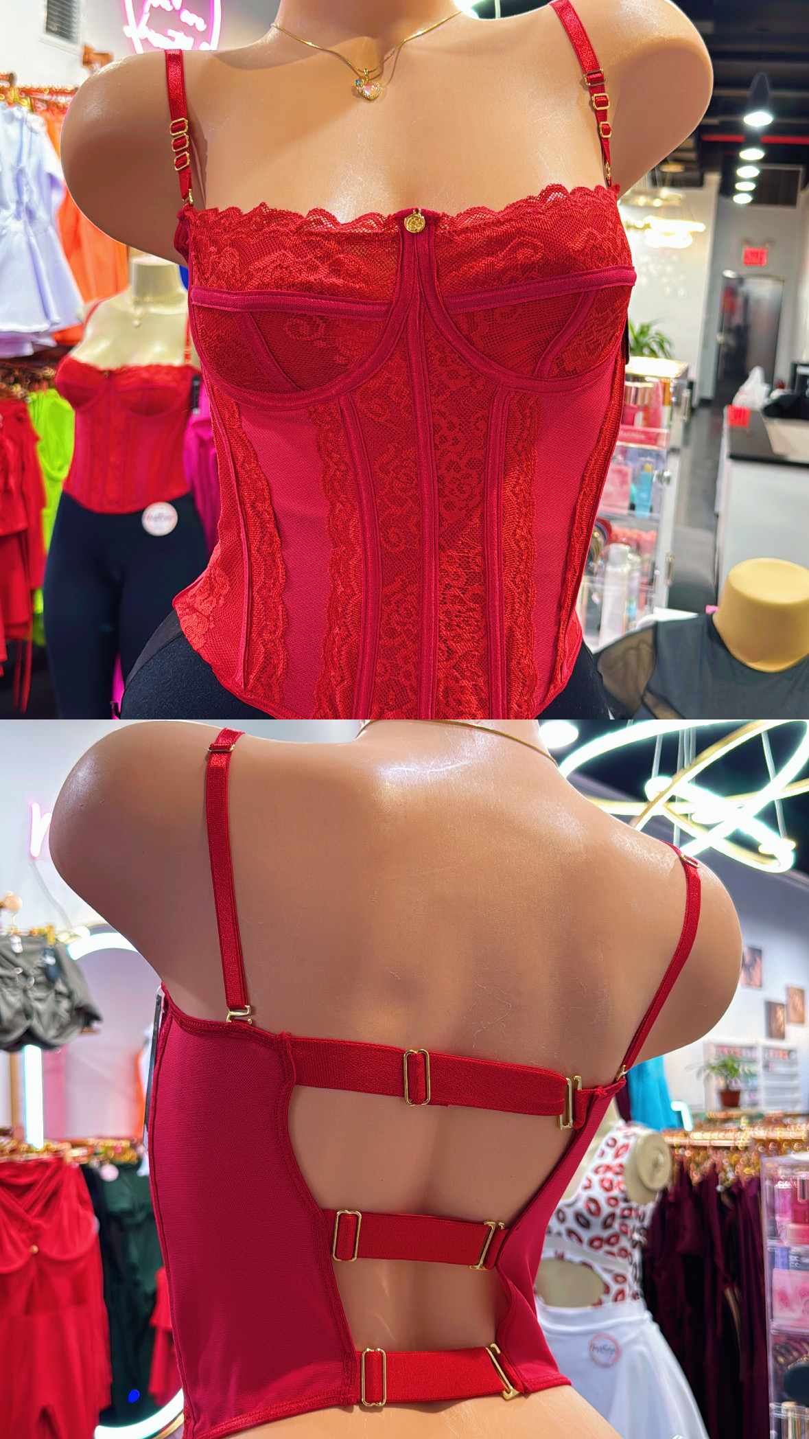 Corsé en encaje floral con paneles de malla que realzan la silueta. Cuenta con copas estructuradas, varillas de soporte y tirantes ajustables para un ajuste cómodo y favorecedor. Ideal para looks sensuales y elegantes.